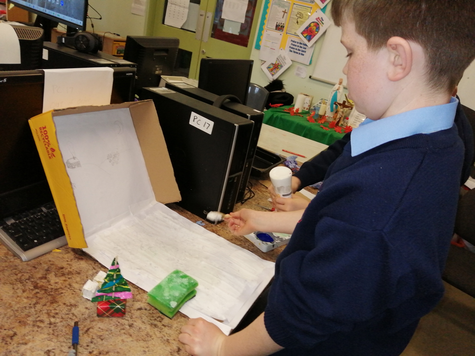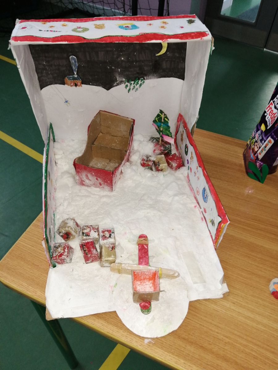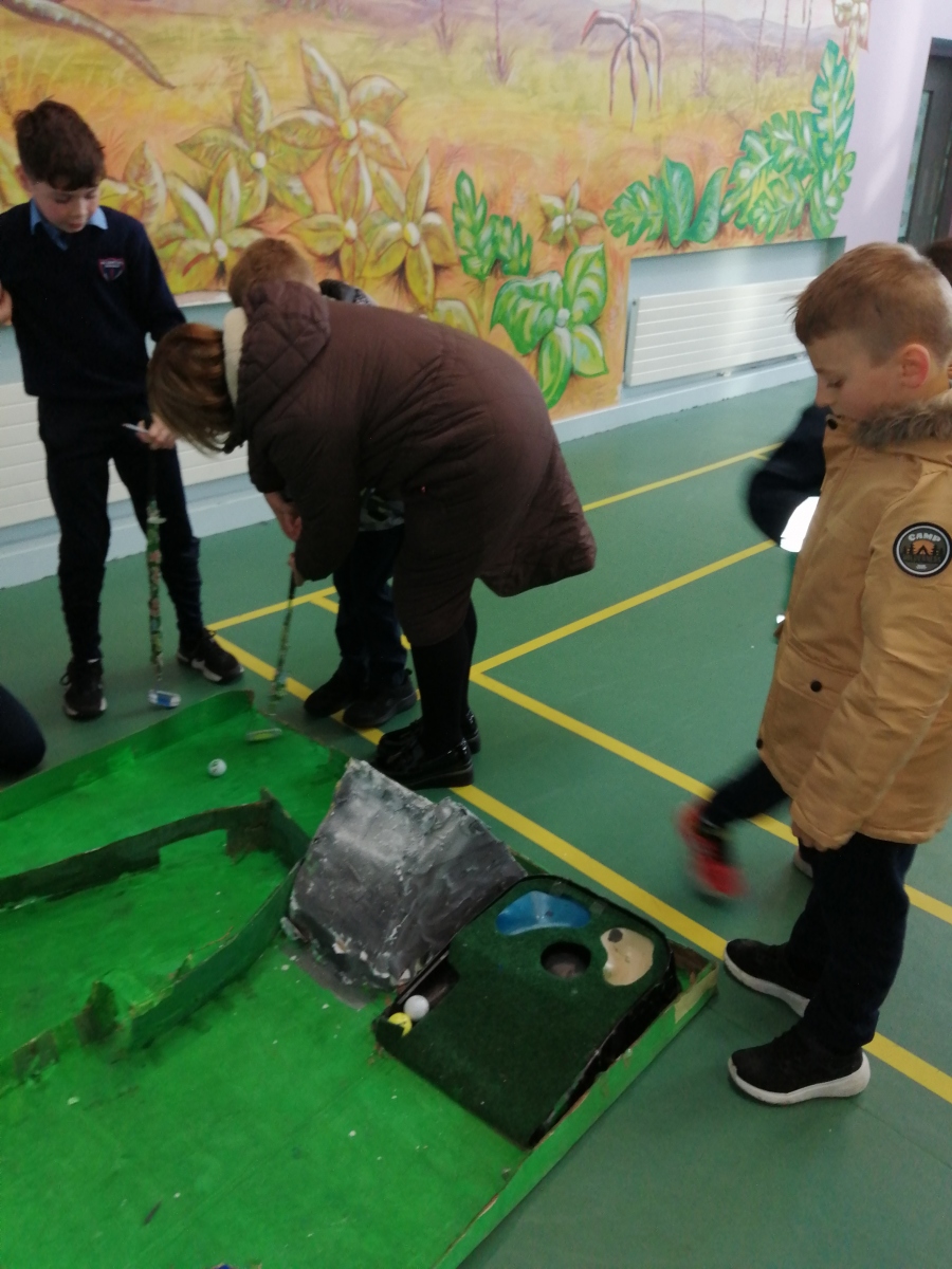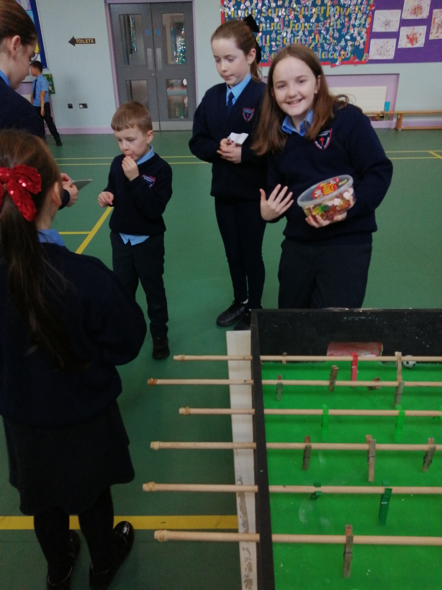 All pupils were asked to vote for their favourite play activity which resulted in Michael,Finlay and Joe with their Winter Wonderland creation receiving the most votes.In second place was the Crazy golf game which was created by Evin,Cian and Zach. The Foosball table won third place and was created by Elaine,Katie and Carragh.